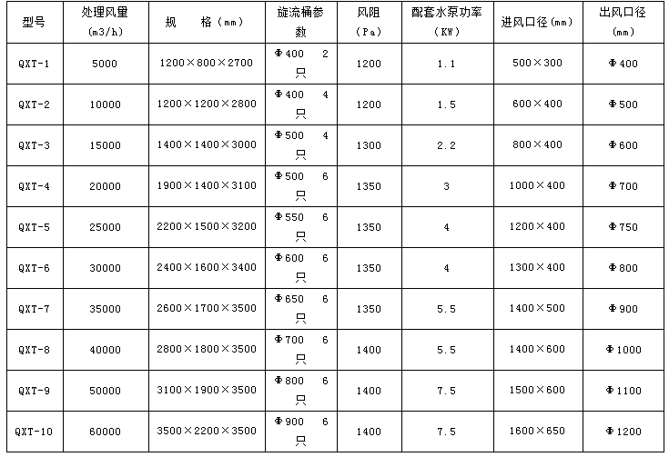 氣旋塔技術(shù)參數(shù):